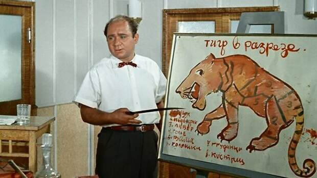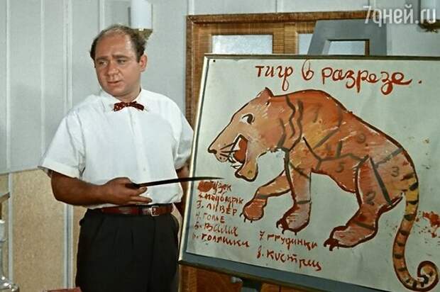 Чаще всего зрители вспоминали сцену из «Полосатого рейса», где герой артиста, буфетчик по профессии, выдает себя за дрессировщика. Когда командир судна просит провести ликбез среди экипажа, Глеб Шулейкин показывает матросам «тигра в разрезе».