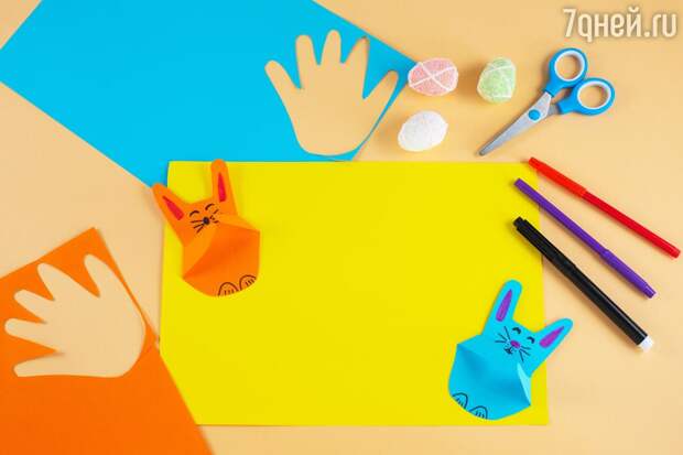Помимо набора бумаги, вам также понадобятся канцтовары, которые наверняка уже есть у вас дома: клей, ножницы с закругленными кончиками (если вырезать будет ребенок), чистые салфетки. Для украшения поделки приготовьте фломастеры, краску или пластилин.