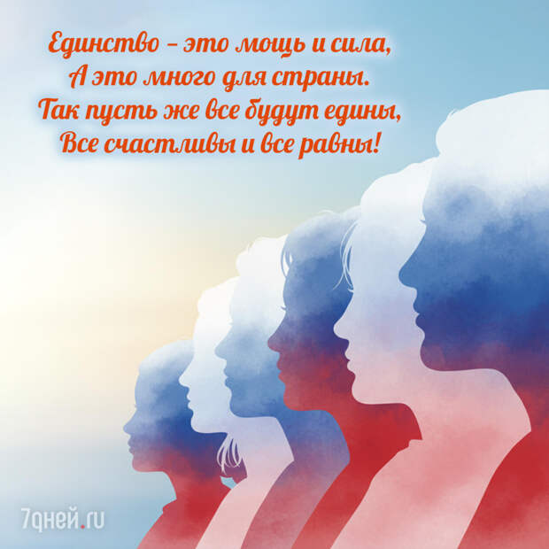 Традиционно в этот день проходят концерты, акции и выставки, а в социальных сетях появляются поздравления и красивые открытки. Это способ передать друг другу доброе слово и напомнить: народов много — Родина одна. Мы собрали подборку праздничных открыток, чтобы вы могли поздравить родных, друзей и коллег.