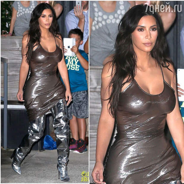 А она ничего не боится! Вот и на этот раз она надела такие необычные сапоги! Как говорится, отпад! Из металлизированной кожи от Balenciaga. К такой обуви было подобрано полупрозрачное платье-комбинация тоже из совершенно оригинального материала от Maison Margiela. Как всегда красотка выставила свой огромный бюст напоказ. Волосы Ким оставила распущенными и слегка спутанными, как будто только что проснулась и встала с постели. Опрос
