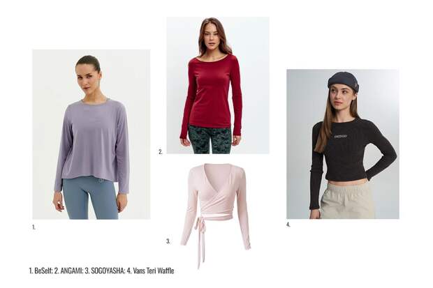 Лонгслив из мягкого трикотажа — и практично, и выглядит интересно. Хлопок дышит, не липнет к телу и приятен коже во время медленных, осознанных практик — именно то, что нужно на хатхе или инь-йоге.