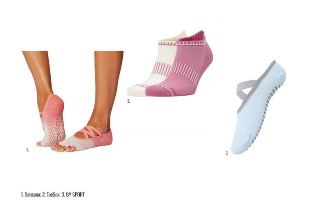Пригодятся тем, кто занимается дома или в студии на скользком паркете. Специальные носки для йоги с нескользящими точками на подошве и открытыми пальцами — отдельная история: пальцы сохраняют тактильный контакт с полом для баланса, а ноги не замерзают.