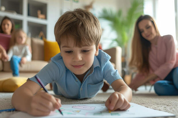 Опишите словами выдуманный, довольно сложный механизм или план помещения: «Нарисуй гараж с двумя входами. У левого входа стоит красная машина с одной фарой, а у правого — ящик с тремя инструментами. На крыше — антенна в виде спирали». Задача ребенка — воссоздать описание максимально точно. Эта игра развивает и слуховое внимание, и способность удерживать в голове несколько условий одновременно.