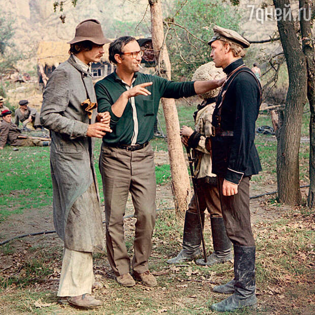 Со съемок Никита меня пять дней не отпускал — и наконец я увидел, как он работает. Снималась сцена, в которой Елена Соловей — в роли звезды немого кино — встает в разные эффектные позы. У Лены получилось не сразу, и Никита показывал ей, как надо — абсолютно женскими ломкими движениями, удивительно точно. У него же, кроме режиссерского, огромный актерский талант. После каждой смены накрывался вечерний стол, с разносолами и неизменной «кончаловкой» — фирменным напитком Натальи Петровны Кончаловской. Совершенный нектар! Но при этом очень опасный. Он пьется как какое-то божественное вино, ты веселишься, а потом вроде бы ни с того ни с сего превращаешься в полного идиота. Я сам не раз был свидетелем таких перерождений.