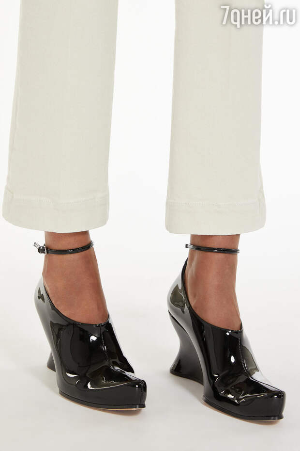 Туфли на высоком изогнутом каблуке, который назывался «французский каблук», «каблук Людовика» или «голубиная лапка» — модная примета эпохи рококо. Сегодня дизайнеры Sportmax вспоминают изящные туфельки французской знати, придавая изогнутую форму танкетке. Стопа кажется изящной, а образ еще более очаровательным. Ходить на такой танкетке легко и приятно, обязательно примерьте – не пожалеете.
