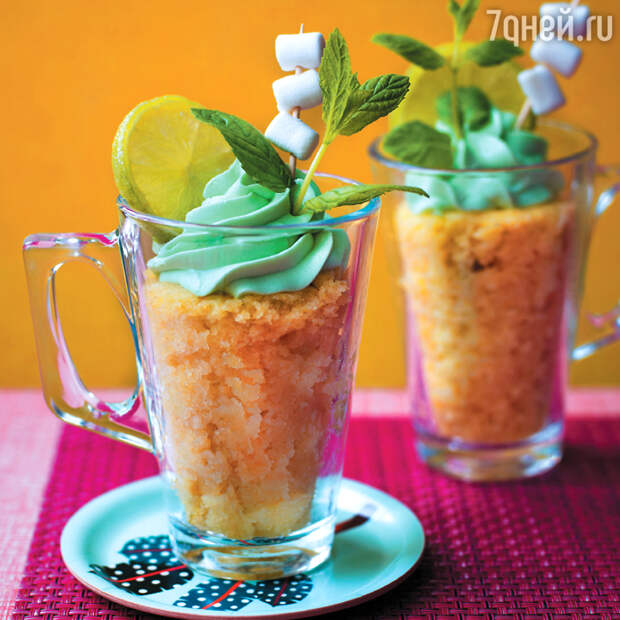 - Украсьте десерт засахаренным лаймом и веточкой мяты.