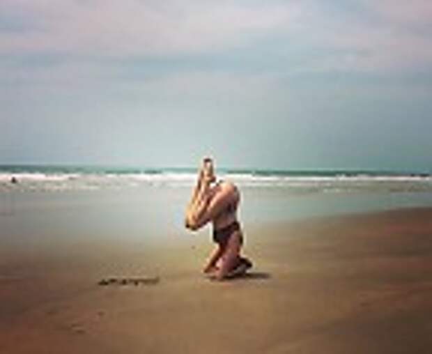 Любовь Толкалина занимается йогой на берегу океана