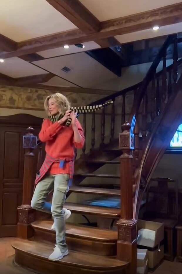 Юлия Высоцкая опубликовала новое видео в своем блоге. В кадрах телеведущая спускается по деревянной лестнице внутри своего дома. Она проживает там вместе с супругом, режиссером Андреем Кончаловским, и детьми.