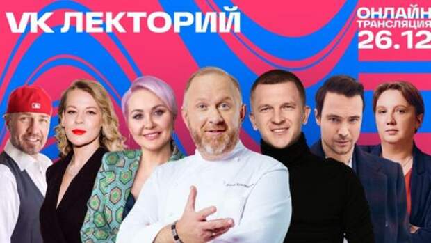 VK Лекторий 26 декабря покажет трансляцию выступлений известных спикеров, которые расскажут о личностном росте, бизнесе и искусстве. Среди участников новогодних лекций — актриса Александра Ребенок, искусствовед Елизавета Лихачёва и актёр и режиссёр Алексей Чадов.