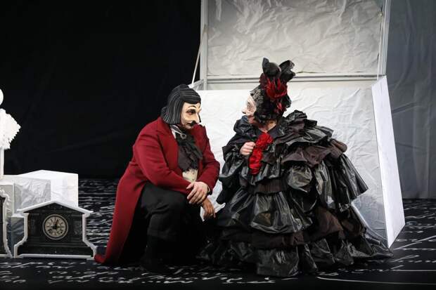 Семейный дуэт Ароновой и Гандрабуры был отмечен как лучший актерский дуэт премиями «Московского комсомольца» и «Хрустальная Турандот». Они играют в масках работы художника Максима Обрезкова, создавая широкую портретную галерею. «Их двое, но создаётся ощущение, что на сцене огромное число талантливых артистов. Это просто фейерверк персонажей и актёрского мастерства!» — делится впечатлениями режиссер Валерий Спирин, который как раз и снимал постановку для экрана. И своей главной задачей он видел — передать живое ощущение театрального присутствия и энергии актерской игры.