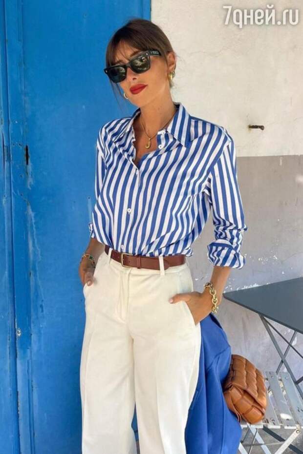 Рубашка в полоску и белые брюки