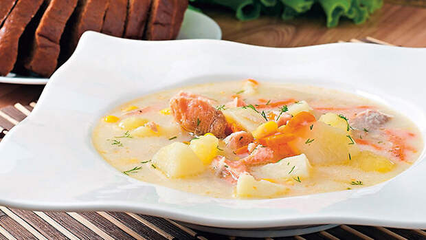 Рецепт простого и вкусного супа из лосося с картофелем и булгуром.