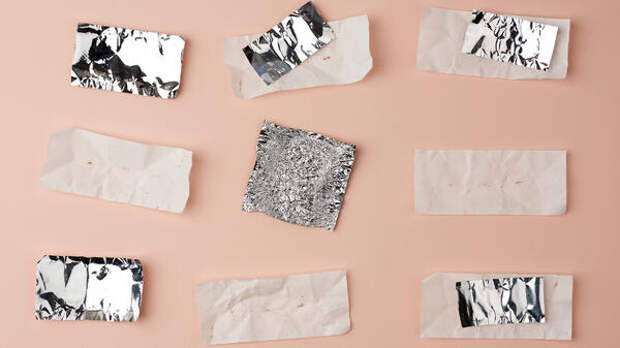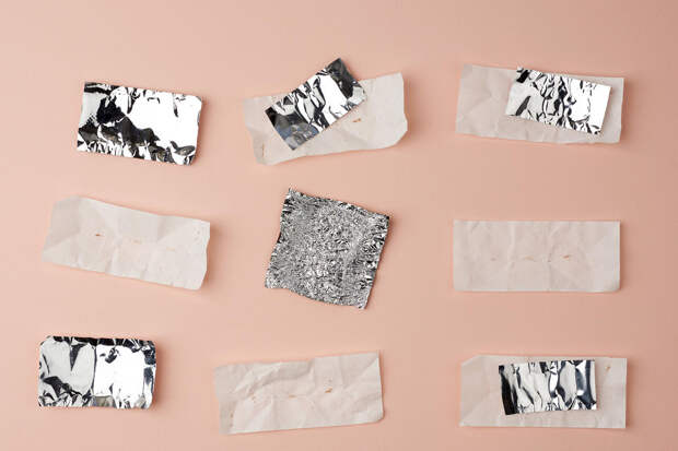 Расправьте и разложите обертки изнаночной стороной наверх, возьмите одну из них и расположите длинным краем по горизонтали. Сложите фантик пополам, чтобы наметить центральную горизонтальную линию. Затем расправьте его и согните каждую сторону к центру, снова расправьте – получится три линии. Начинайте складывать фантик с каждой стороны по намеченным линиям, начиная от края к центру, в конце сложите еще раз пополам. У вас должна получиться тонкая полосочка с загнутыми внутрь краями. Эту полосочку согните по центру, затем расправьте и сложите каждую из частей еще раз пополам к центру. В итоге она окажется сложенной вчетверо. Повторите эти шаги с каждым из подготовленных фантиков.