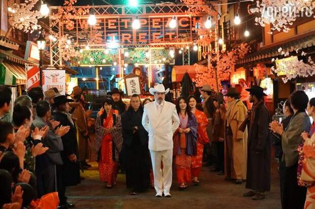 В странном мире будущего, напоминающем парк аттракционов в японском стиле, всем заправляет Губернатор. По городу развешаны призывы платить налоги, сам Губернатор держит гарем несчастных гейш и время от времени осыпает челядь дождем из американских банкнот. Выбраться из города невозможно, потому что там натуральный зомби-апокалипсис с цитатой из Льюиса Кэррола: ходячие мертвецы изо всех сил пытаются остановить время (и, да, среди них есть Безумный Шляпник). Но одна из любимых девочек Губернатора все же решается сбежать и на ее поиски снаряжают грабителя банков по кличке Герой. Снаряжают в прямом смысле: заковывают в комбинезон с детонаторами, которые реагируют на агрессию, на сексуальное желание и на срыв губернаторского дедлайна. Как при этом Герою ходить в туалет, не очень понятно – но, поверьте, это кино вообще не про логику.