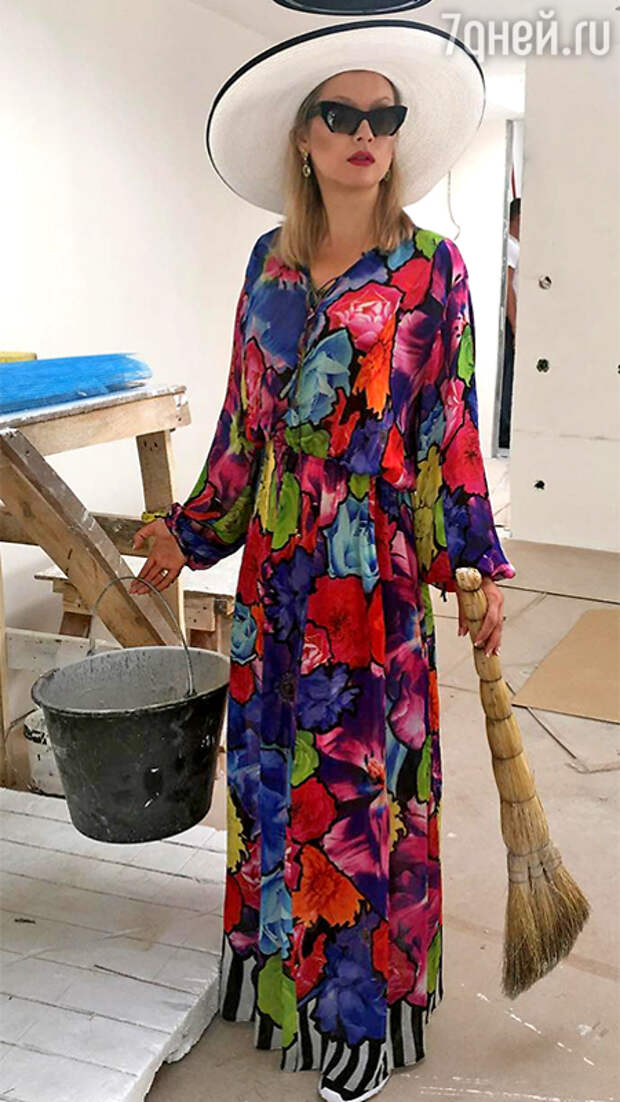 Соответствовать своему фирменному стилю знаменитость старается не только на светских мероприятиях, на красной дорожке Каннского фестиваля, куда ежегодно попадает эта любительница экстравагантности. И в обычной жизни Елена стремится одеться так, чтобы все окружающие просто ахнули.Так на днях Ленина продемонстрировала на своей страничке в социальной сети довольно яркий образ: разноцветное платье от Roberto Cavalli, солнцезащитные очки от Miu Miu и широкополую шляпу от Lia Gureeva. В таком виде Лена появилась на строительстве своего загородного дома, которое идёт полным ходом в 34 километрах от Москвы. Хозяйка владений, судя по всему, активно руководит ремонтно-отделочными работами и даже принимает в них самое непосредственное участие. Кстати, уже готова настоящая русская баня, которая стала предметом гордости Лениной. А стены в доме светская львица собирается расписать золотой краской.