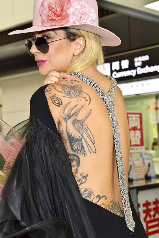 Почему это удачно: все татуировки поддерживают ее образ — они заметные, но не спорят с ярким сценическим стилем.