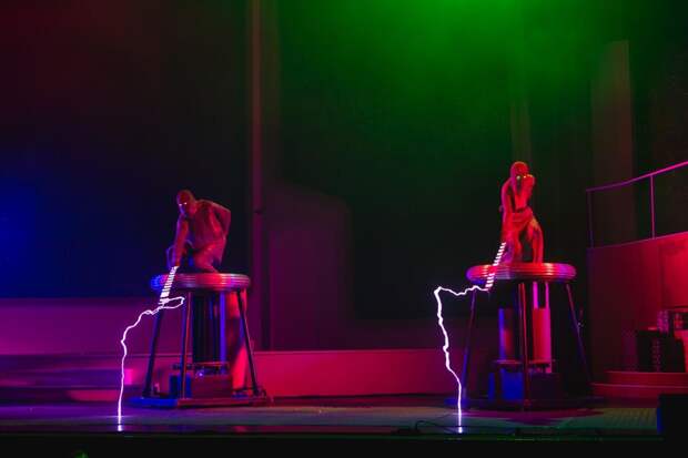 35 экспериментов, аниматронные роботы и ёлка из катушек Теслы.