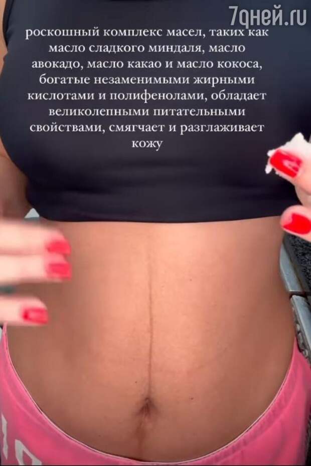 Для этого ведущая телестройки сняла на видео процесс нанесения на тело скраба для повышения упругости кожи. В процессе она показала, как она выглядит через два месяца после проведенного кесарево сечения.