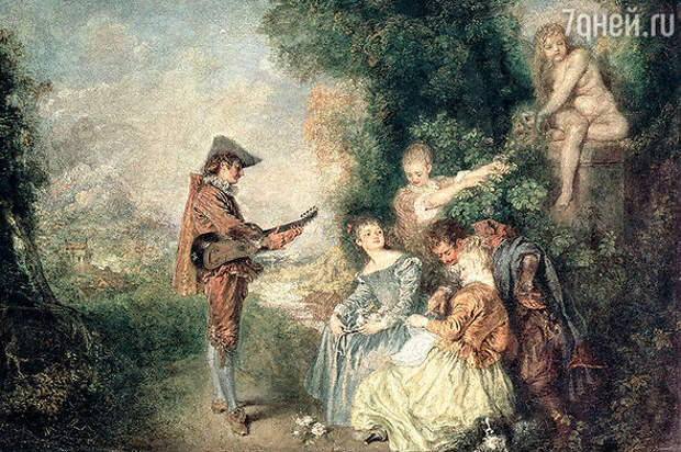 Валансьен оказался в дыму очередной войны. Как-то Антуан познакомился с лечившимся после ранения офицером, который так рассказывал о сражениях, что возбудил фантазию художника. Тем более что одну батальную сцену он написал еще в Париже, ее купил известный коллекционер и заказал вторую картину. Ватто принялся за работу, хотя изображения битв у него если и возникали, то вдали, на заднем плане. Главными действующими лицами были солдаты, отдыхавшие, сидевшие в раздумьях на земле под деревьями, — и молодые женщины, невесть каким ветром занесенные в эти пропахшие порохом края. То ли жены, то ли подруги, то ли прекрасные видения, возникшие посреди бедствий пред взором измученных вояк...