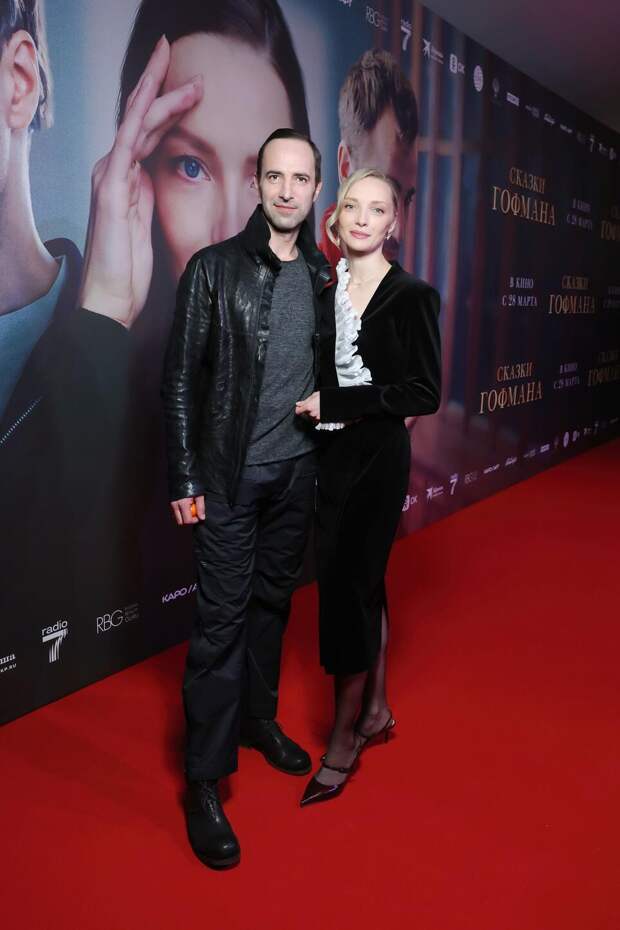 А вот на красной дорожке Екатерина Вилкова уже вернулась к привычному звездному образу. Она выбрала черное бархатное платье с объемным воланом, а образ дополнила туфлями-лодочками. На премьеру многие пришли семьями. Так, Вилкова появилась с мужем, Ильей Любимовым, Татьяна Лютаева с сыном, 24-летним Домиником Раманаускасом, Денис Шведов с женой Александрой Розовской.