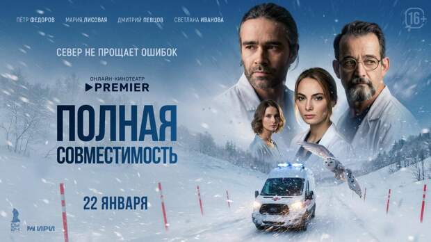 Онлайн-кинотеатр PREMIER назначил дату старта показа новой медицинской драмы «Полная совместимость». Первые серии проекта с Марией Лисовой, Петром Федоровым, Дмитрием Певцовым и Светланой Ивановой появятся в онлайн-кинотеатре 22 января.