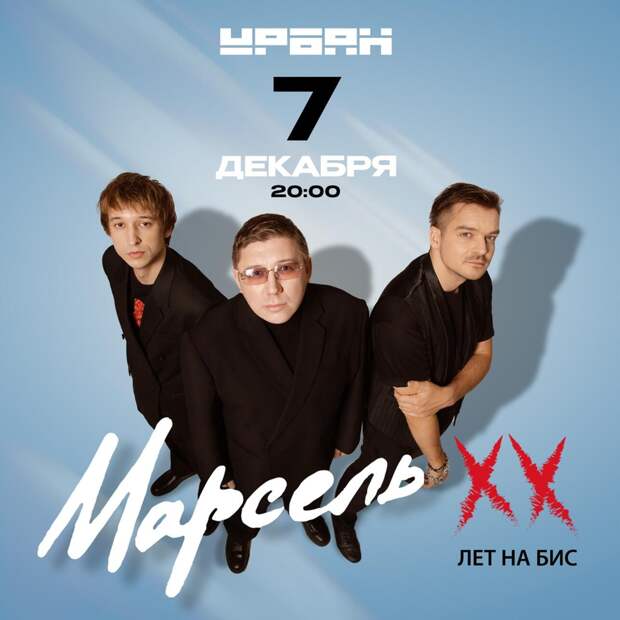 Приглашаем вас стать частью особенного события — концерта в честь двадцатилетия «Марсель» на бис! Вас ждут сюрпризы и специальные гости, расширенный состав музыкантов и энергетика, которая не оставит равнодушным никого.