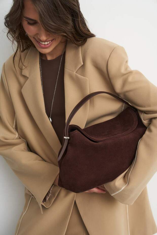 Изготовленные из мягкой замши или кожи, шоколадно-коричневые сумки-тоут с верхней ручкой и сумки через плечо понравятся любительницам минимализма, которые ищут перемен, не прибегая к кардинально новой цветовой палитре.
