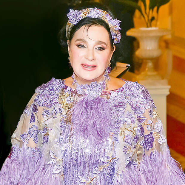 Редким выходом в свет удивила легендарный тренер по художественной гимнастике Ирина Винер. Ее наряд — блестящее платье с сиреневыми перьями и даже ободок-кокошник в тон — оказался самым ярким на вечере. Настасья Самбурская блистала в черном платье с белой меховой накидкой, а Екатерина Климова — в изумрудном с открытыми плечами.