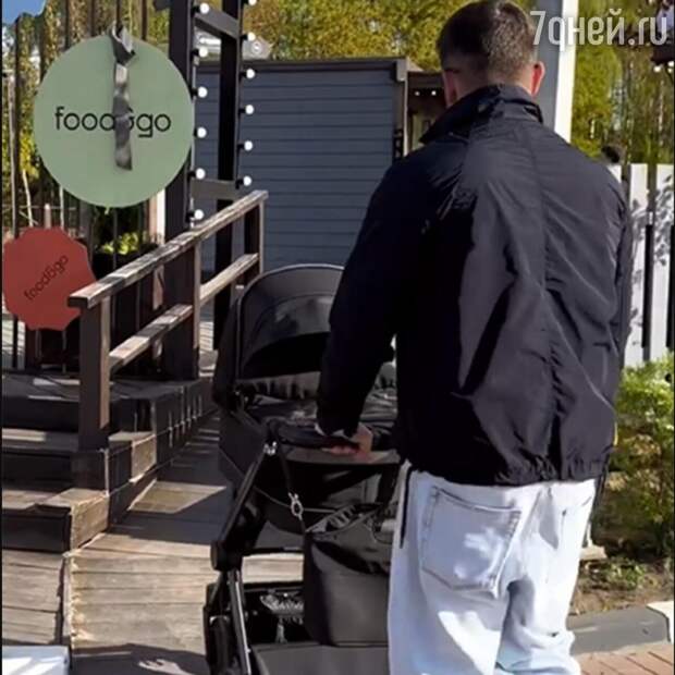 Зато теперь он с гордостью вывез своего наследника на прогулку, управляя черной «пацанской» коляской. И Зепюр тут же запечатлела этот первый выход семьи в полном составе подышать свежим воздухом.