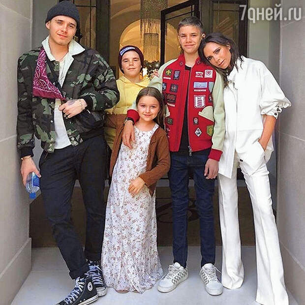 — Бруклин поступил в университет в Нью-Йорке на отделение искусства, хочет стать профессиональным фотографом в этой сфере. Возможно, и в области моды тоже. Он всегда меня поддерживал, помогал в организации показов, работал моделью — и неплохо знает этот мир, его закулисье. Бруклин очень талантливый, прекрасный сын. Мы с Дэвидом им очень гордимся. Я до сих пор не могу смириться с его отъездом. Ужасно скучаю. Счастлива, когда он приезжает к нам в Лондон из Нью-Йорка. А без него у меня синдром опустевшего гнезда. Хотя это глупо: у меня же еще трое детей! Ромео обожает теннис, Круз увлекается музыкой, играет на барабанах. Дочке Харпер всего шесть лет, пока она мечтает стать изобретателем. Но Дэвид говорит, что Харпер — его единственная и последняя надежда. Потому что она любит погонять мячик.