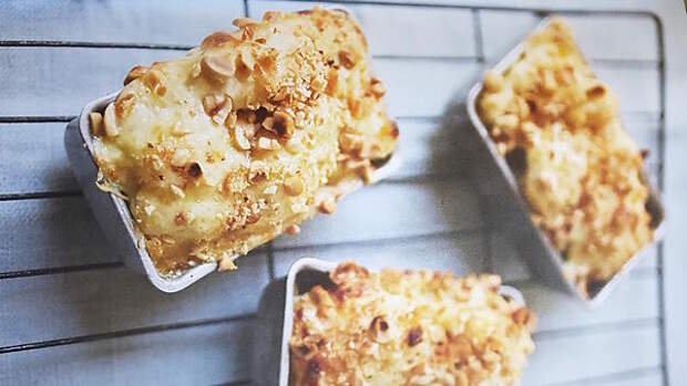 - Посыпьте оставшимся сыром, фундуком и хлебными крошками. Запекайте 10 минут, а затем поставьте на несколько минут под горячий гриль, чтобы сверху образовалась золотистая корочка.