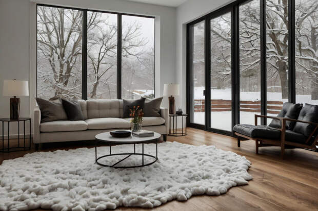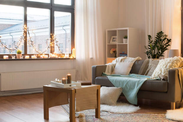 Шторы с подкладкой снижают теплопотери через окна, а ковер на полу добавляет до 3 градусов.Если не хотите менять интерьер, достаточно заменить легкий тюль на многослойные занавески и добавить несколько декоративных подушек или теплый плед.4. Оптимизируйте расстановку мебели