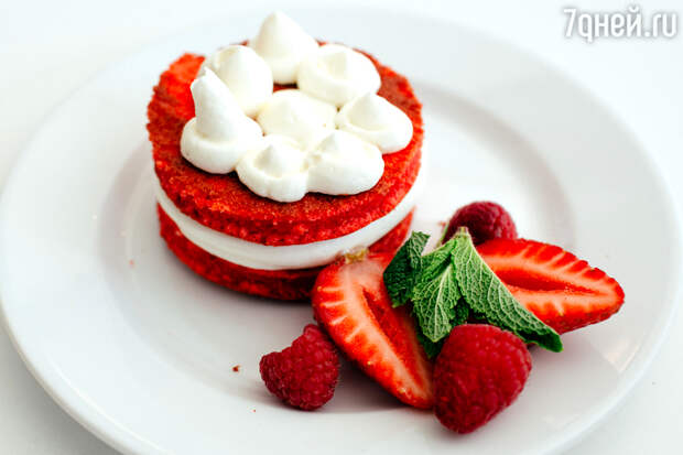 - Крем переложить в конверт, выдавить на пирожное, украсить ягодами.