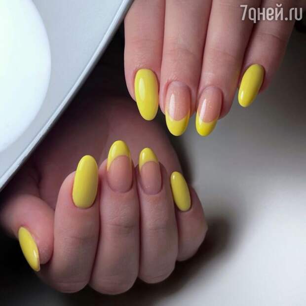 Ярко-желтый маникюр уже превратился в летнюю классику. Как и апельсиновый он приковывает взгляды, отлично выглядит на загорелой коже. Не успели обзавестись загаром? Тогда приглядитесь к нежному оттенку лимонного сорбета, он более сдержанный и элегантный.
