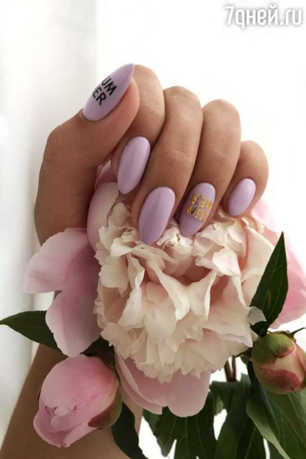 Мы все немного подустали от всевозможных оттенков розового цвета, поэтому обратимся к нежному сиреневому. Прелесть лавандового цвета в том, что даже в матовом исполнении он смотрится элегантно. Отличный вариант для повседневных выходов и для вечерних мероприятий. Поддерживать сиреневую гамму в образе не обязательно, это будет выглядеть нарочито. Пусть лавандовый цвет солирует на ногтях!