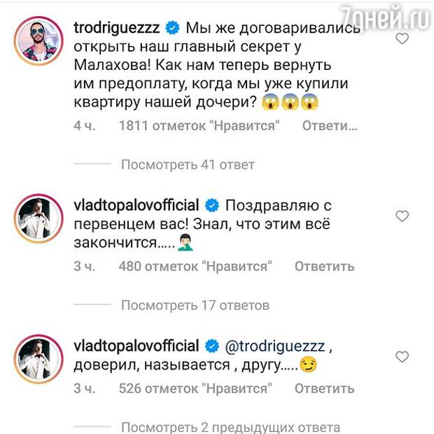 «Напутешествовали», — подписала кадр Регина. Никаких других объяснений «семейному» кадру она не дала, оставив фанатов теряться в догадках, чей же это ребенок на самом деле.Родригез в комментариях прямо говорит, что это их общая дочка. «Мы же договаривались открыть наш главный секрет у Малахова! Как нам теперь вернуть им предоплату, когда мы уже купили квартиру нашей дочери?» — написал Тимур. Впрочем, очевидно, что он шутит и поддерживает интригу.