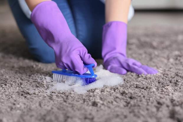 - Взбейте пену и чистите ковер именно пеной, не заливая водой.