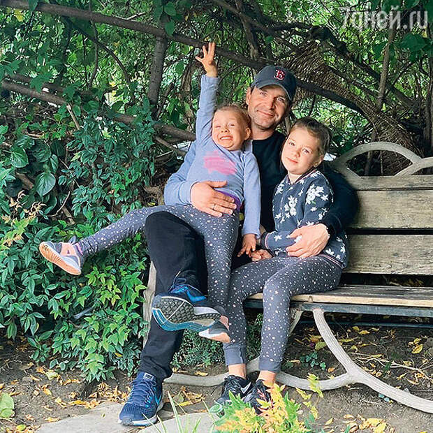 — Ну как воспитываю? В любви. Стараюсь быть для них примером, как, в общем-то, и для меня был всегда мой папа. Стараюсь… Сказки рассказываю, книжки читаю, делаю все, чтобы они росли разносторонними, чтобы спортивными были. Мы много путешествуем. К морю, в горы, в Европу. Куда угодно. Зимой поставили девочек на лыжи, им очень понравилось, они прекрасно освоились. И теперь ждем снега, чтобы опять поехать куда-нибудь покататься. Старшая ходит на фигурное катание, занимается верховой ездой. Младшая тоже по мере сил за ней тянется, хочет на акробатику ходить. А вот с фигурным катанием у нее пауза. Начала, вроде понравилось кататься, потом говорит — не хочу. Мы и не заставляем. Пусть все будет по любви. Ни в театр, ни в кино дочерей тащить специально не собираюсь, постараюсь их уберечь от этого.