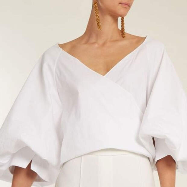 Этот предмет одежды создает романтичный выразительный силуэт, при этом легко сочетается с брюками и юбками. Правда, пышные юбки или палаццо в этом случае лучше отложить в сторону, чтобы не переборщить с объемом. Но с узкими дудочками или юбкой-карандаш такая блуза будет смотреться просто шикарно.