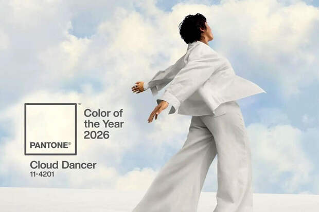 Каждый год Pantone выбирает цвет года, который становится трендом в моде, интерьере, графике, рекламе. В 2026 году им стал оттенок с витиеватым названием Cloud Dancer, или «Облачный танцор». Несмотря на замысловатый нейминг, речь идет об обычном нейтральном белом.