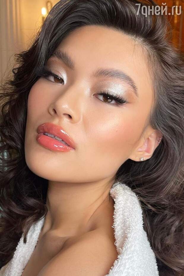 С подачи корейских блогеров в моду входит сияющий макияж, причем наносить сияющие текстуры можно туда, куда хотите: только на скулы, на глаза или губы. Для вечеринки можно использовать хайлайтер, который заменит и тени. Или же тени с эффектом сияния и хайлайтер. Сияющие тени нанесите на глаза, а хайлайтер на скулы, переносицу, зону декольте, над верхней губой.