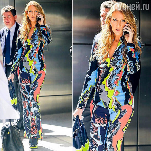 Но время идёт и лечит даже самые кровоточащие сердечные раны. Поэтому канадская певица стала все чаще выходить в свет. Звезда, например, была гостьей нескольких показов на Неделе Высокой моды в Париже.А на днях 48-летнюю Селин сфотографировали в Нью-Йорке в таком экстравагантном виде. Она облачилась в очень яркий брючный костюм из осенней коллекции Versace. Журналисты не забыли отметить, что Селин обычно выбирала наряды сдержанных оттенков и вообще обожала вещи черного цвета. Но этот костюм в прессе назвали «палитрой живописца» и «цветовой какофонией». Свой образ звезда завершила подобающей сумкой от того же бренда.