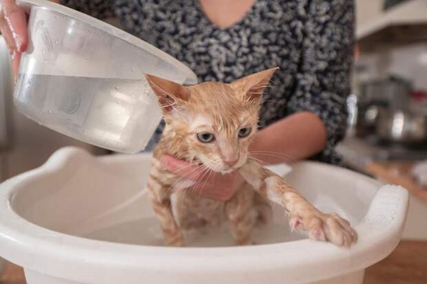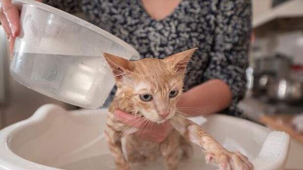 В первую очередь, как считает автор канала, нужно позаботиться о том, чтобы температура воды была от 38 до 40 градусов – ее комфортность можно проверить тыльной стороной руки. Далее необходимо соотнести размер животного и емкости, в которой его моют — она не должна быть чрезмерно большой. Маленькую кошечку лучше купать в раковине, но большой все же придется смириться с ванной. Мочить водой питомца следует, начиная от шеи к хвосту, обходя голову и уши. Шампунь по телу зверька нужно растирать мягкими круговыми движениями. Причем средство для мытья должно непременно быть специальным — кошачьим, человеческий шампунь нарушает PH кожи животного.