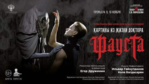 9 и 10 ноября, а также 11 и 12 декабря 2025 года в Государственном академическом театре кукол имени С.В. Образцова состоятся премьерные показы спектакля «Картины из жизни доктора Фауста».
