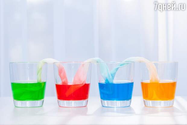 Капиллярный эффектДля этого эксперимента вам понадобится несколько прозрачных стаканов, вода, пищевые красители и бумажные салфетки. Наполните часть стаканов водой и окрасьте ее в разные цвета с помощью красителей. Остальные стаканы оставьте пустыми и расставьте их между теми, что наполнены водой. Салфетки аккуратно сложите в форме трубочек и поместите каждую так, чтобы один конец оказался в стакане с окрашенной водой, а другой в пустом. Постепенно цветная вода будет подниматься по салфетке и перетекать в пустой стакан, окрашиваясь в цвета из соседних стаканов. Например, если вы поставите рядом красный и синий, то в пустом стакане вода станет фиолетовой. На примере этого опыта можно объяснить детям не только капиллярность, то есть самопроизвольное движение жидкости по узким трубкам или пористым телам, но и показать результаты смешивания разных цветов.