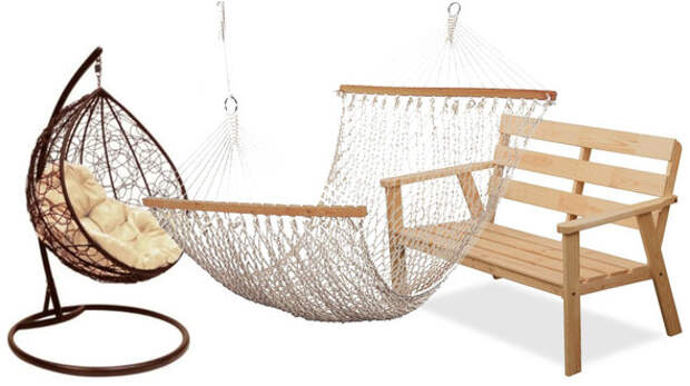 Место для отдыха: гамак, подвесное кресло, скамейка