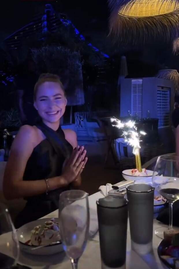 На одном из видео, снятом в разгар прошедшей вечеринки, счастливая Жулина позирует на фоне именинного десерта. Публику заинтриговало кольцо на правой руке бывшей студентки МГИМО, которое она невзначай показала во время праздника.