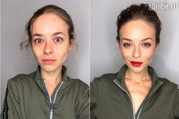Рина Гришина поделилась с поклонниками коллажем, на котором позирует без макияжа и рядом, на контрасте, «при полном параде».