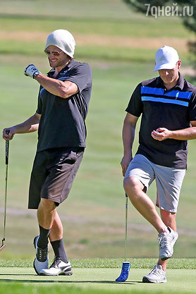 Дженсен Эклс и Джаред Падалеки с энтузиазмом размахивали своими клюшками для гольфа, сопровождая радостными воплями каждый удачный удар.