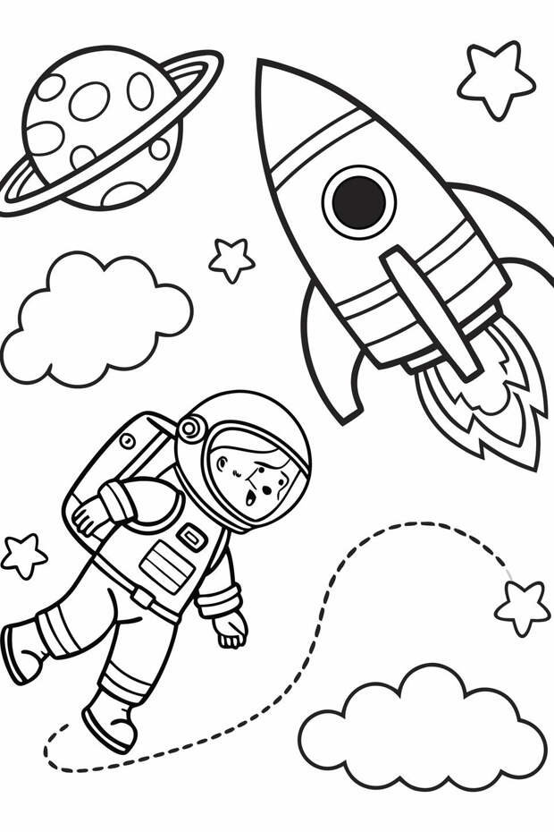 Когда наберется несколько раскрашенных картинок, предложите ребенку создать «бортовой журнал». Объедините несколько раскрасок в одну папку — пусть это будет дневник космических экспедиций. После каждой новой картинки придумывайте короткий рассказ о том, что произошло.